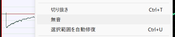 白く線宅出来たら右クリック > 無音をクリックして完了です。